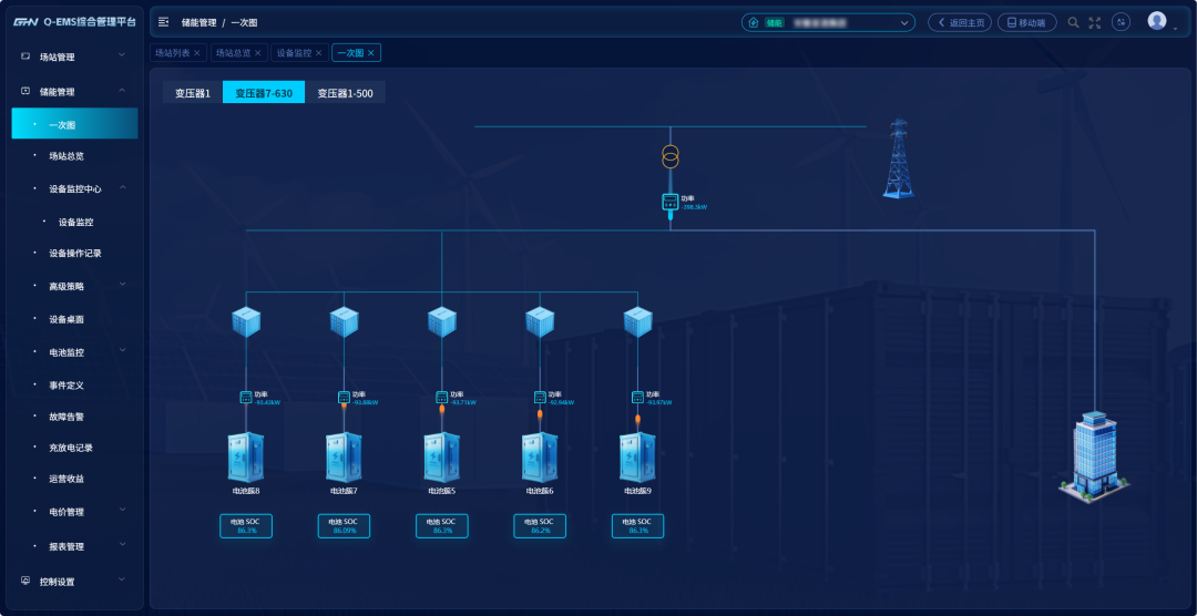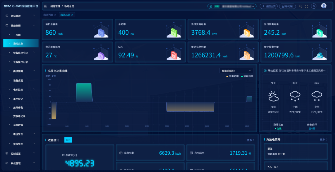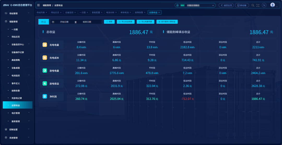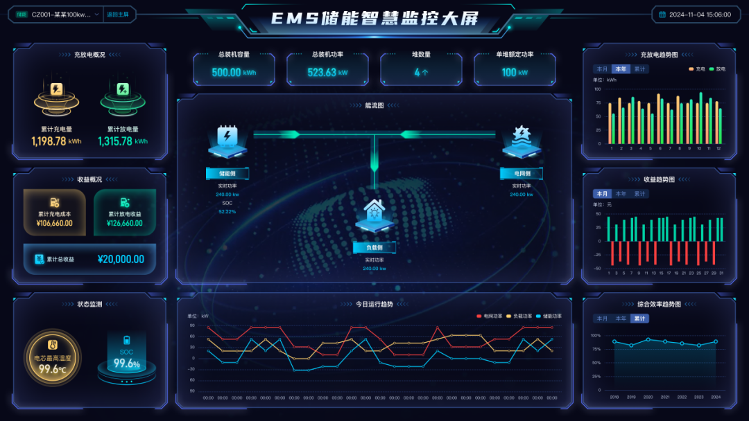 在功能层面,该系统集成了 SCADA、图模库一体化、拓扑分析、资产管理、BMS 与 PCS 监测控制、大数据分析、收益计算、电价管理、远程运维等核心功能。针对不同应用场景,能够实现逆功率控制、负荷随动、需量控制、光伏最大消纳、削峰填谷、需求侧响应、碳排放优化等多优化运行目标,并支持集中遥控、功率平衡、安稳控制、并离网切换、黑启动等多种运行控制方式。此外,系统配备的智能运维管理模块,具备测点设备监控、历史数据分析、故障诊断恢复功能,可实现 EMS/BMS/PCS 一站式运维,有效提升运维效率。