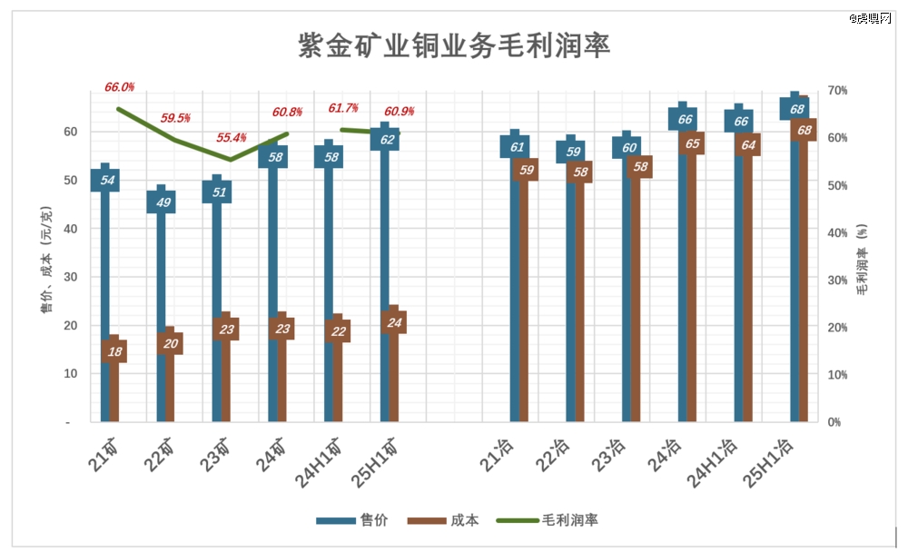 紫金矿业矿产铜毛利润率不输矿产黄金,冶炼铜则是“陪太子读书”: