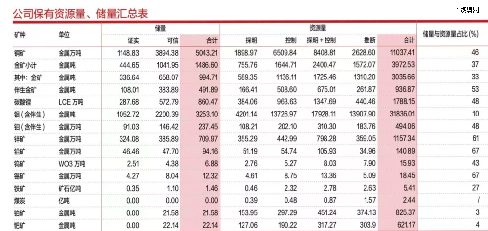 2025年H1,紫金矿业矿山产金38.2吨,新增金资源量88.8吨(含储量34.5吨);矿山产铜43.9万吨,新增铜资源204.9万吨(含储量132.2万吨)。