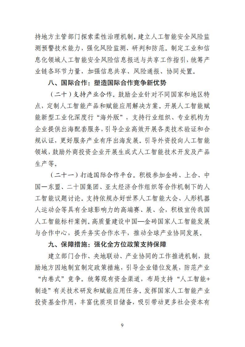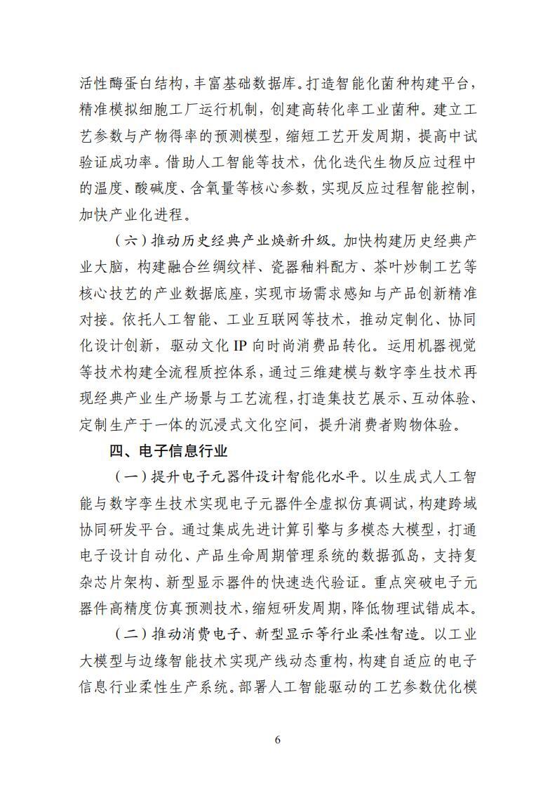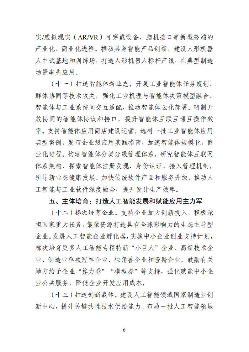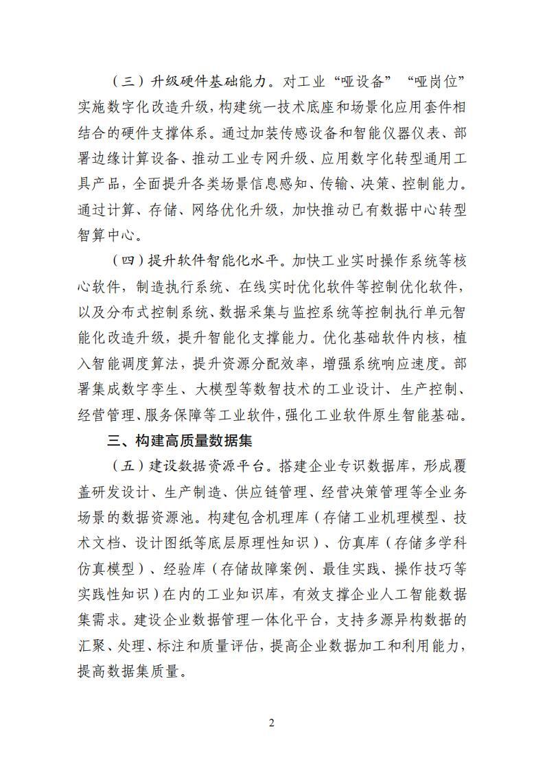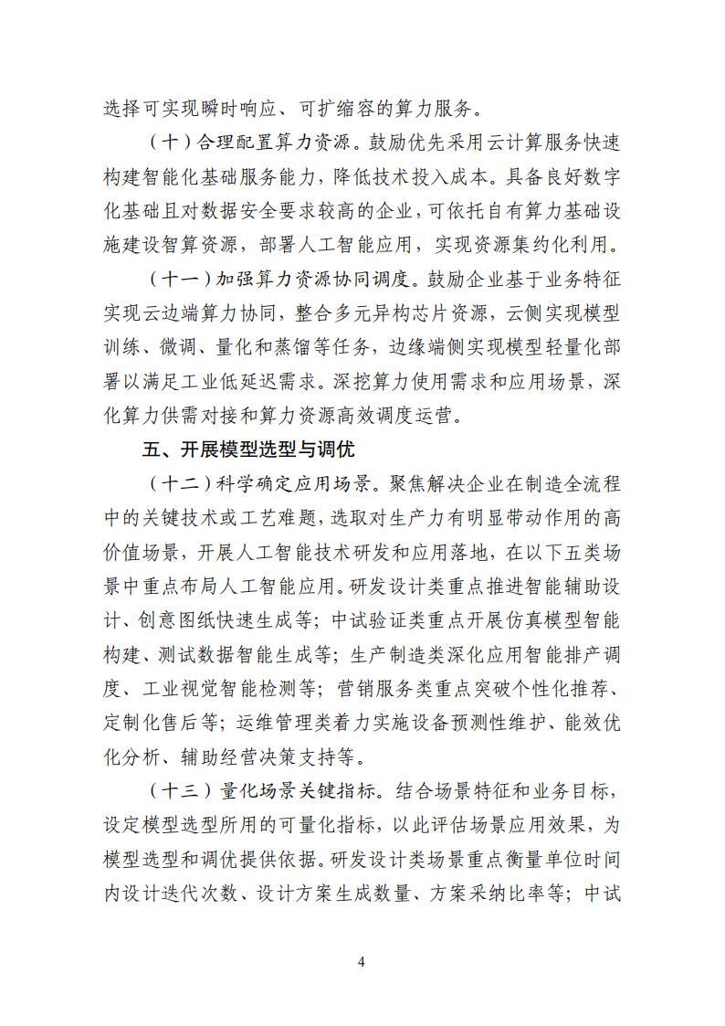 文件指出,深化人工智能技术在绿色制造领域融合应用,针对能源和碳排放管理、资源循环利用等场景需求,研发推广智能化绿色化协同解决方案。打造一批面向行业的应用安全解决方案,加快安全大模型、智能体等落地应用,构建安全运行体系,提升工业领域安全水平。