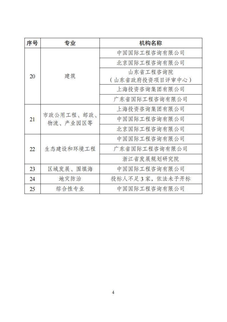 该公告发布了最新的35家《遴选确定的国家发展改革委投资咨询评估机构名单》,评估机构名单共涉及25个专业。
