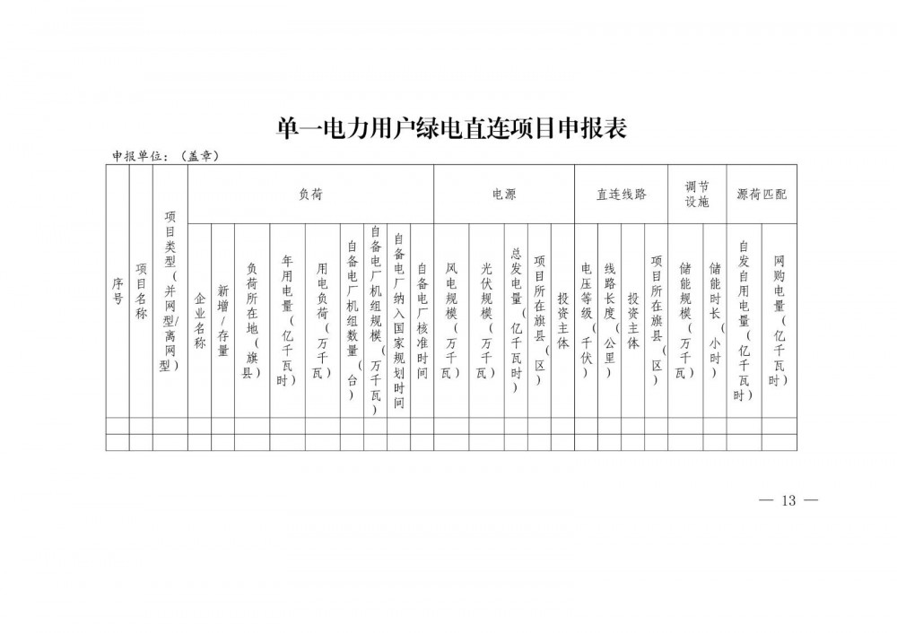 内蒙古自治区能源局关于印发《内蒙古自治区单一电力用户绿电直连项目开发建设实施方案(试行)》的通知