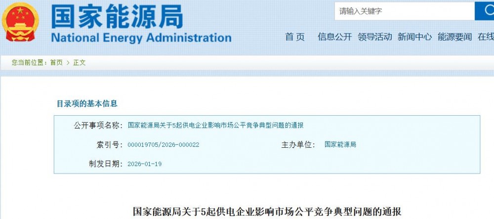 近日,国家能源局发布关于5起供电企业影响市场公平竞争典型问题的通报。