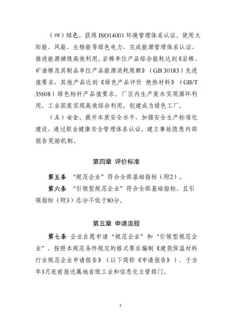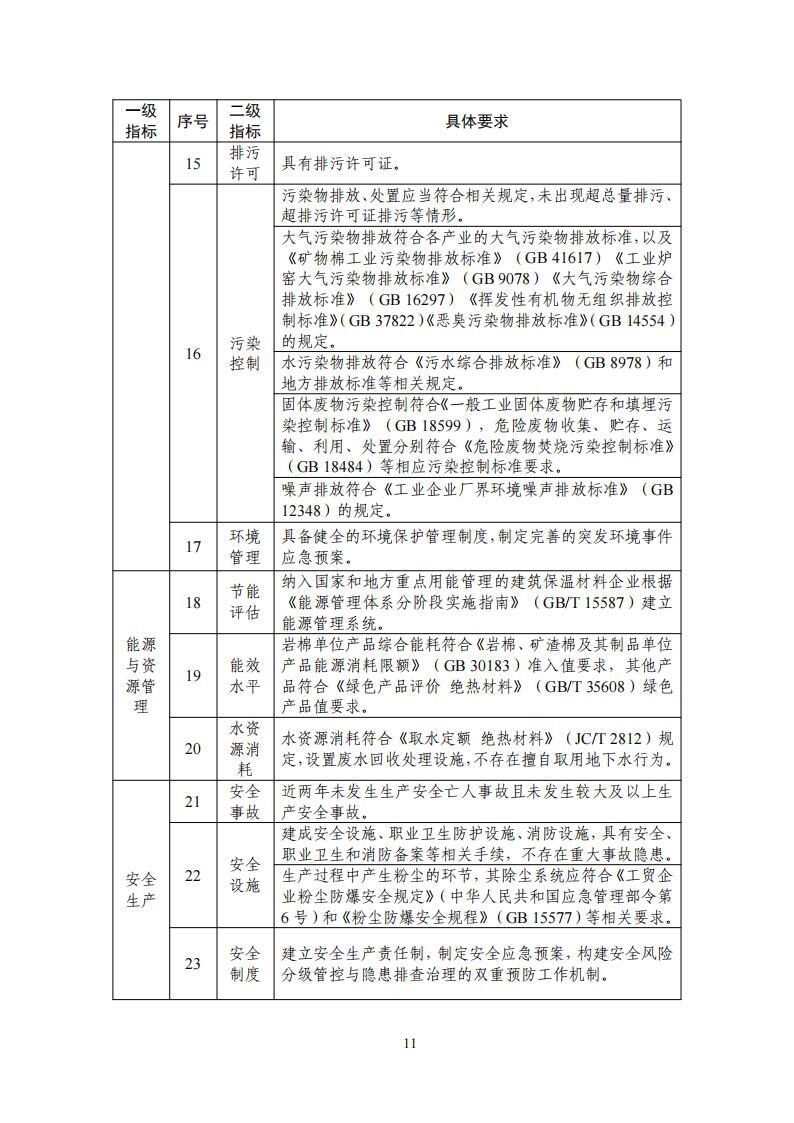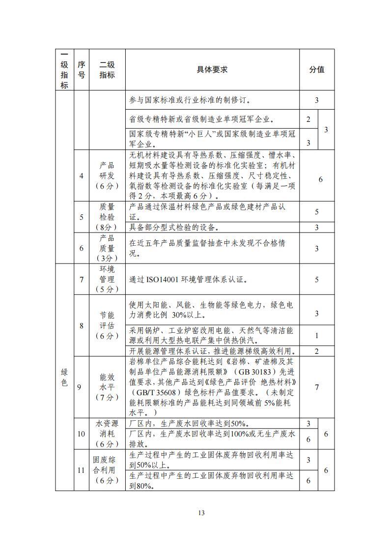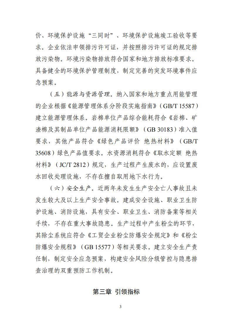 其中,绿色。获得 ISO14001 环境管理体系认证。使用太阳能、风能、生物能等绿色电力,完成能源管理体系认证,推进能源梯级高效利用。岩棉单位产品综合能耗达到《岩棉、矿渣棉及其制品单位产品能源消耗限额》(GB 30183)先进值要求,其他产品达到《绿色产品评价 绝热材料》(GB/T35608)绿色标杆产品值要求。厂区内生产废水实现循环利用。工业固废实现高效综合利用。创建成为绿色工厂。