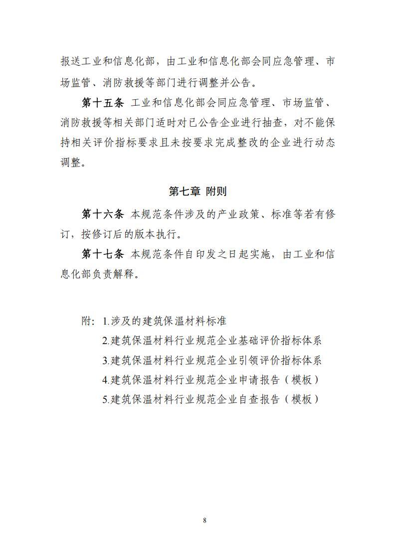 为加强建筑保温材料行业管理,推动行业提质升级,提升本质安全水平,工业和信息化部、住房城乡建设部、应急管理部、市场监管总局、国家消防救援局制定了《建筑保温材料行业规范条件(2025年本)》。现予以公告。