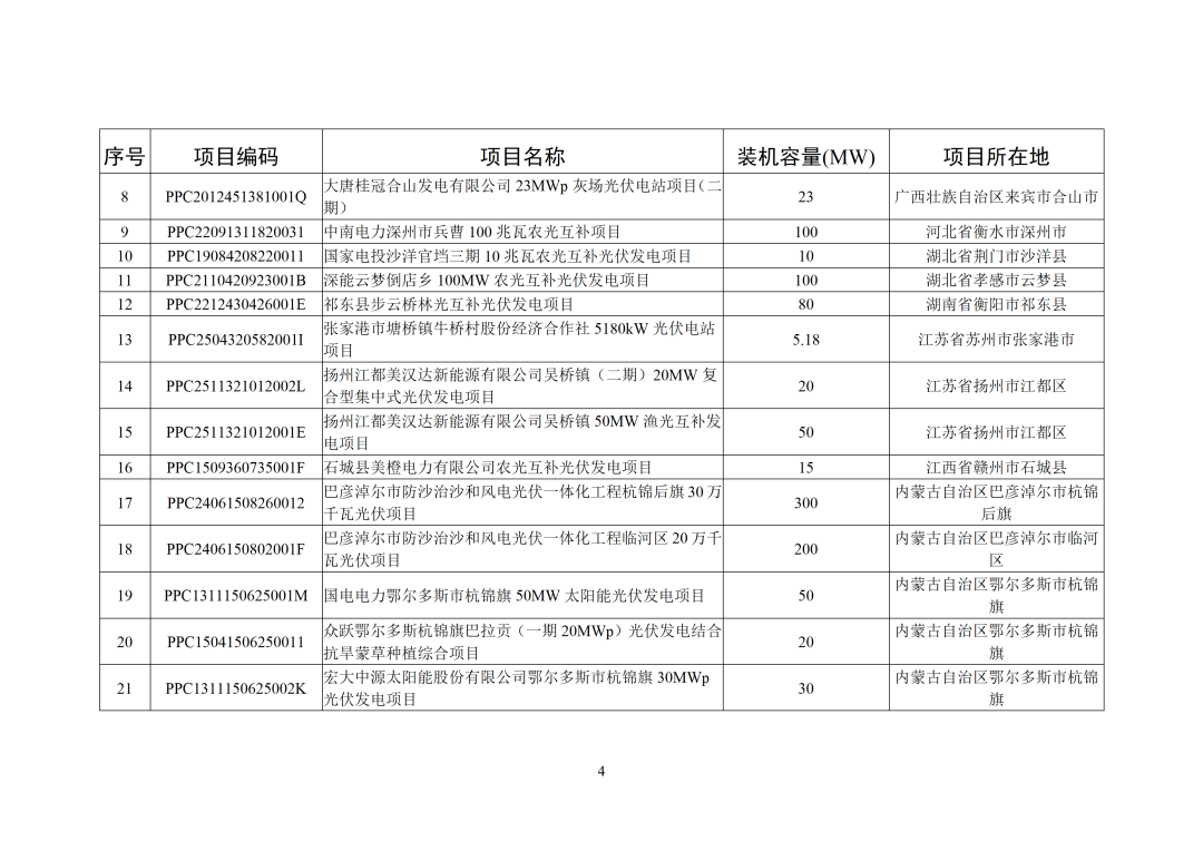 2025年12月,全国新增建档立卡新能源发电(不含户用光伏)项目共6233个,其中风电项目36个,光伏发电项目6190个(集中式光伏发电项目48个,工商业分布式光伏发电项目6142个),生物质发电项目7个。风电、集中式光伏发电、生物质发电项目清单见附件,工商业分布式光伏发电项目清单详见国家可再生能源发电项目信息管理平台网站(网址https://jdlk.renewable.org.cn/card-info-sheet/)。