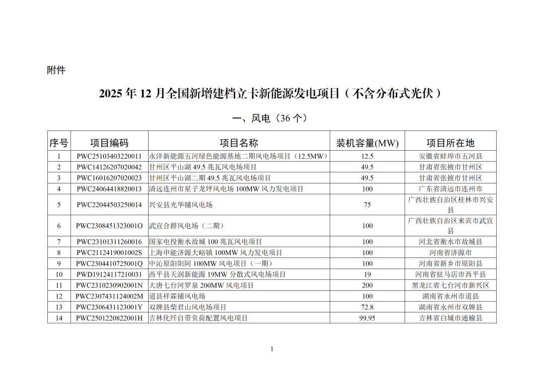 附件:2025年12月全国新增建档立卡新能源发电项目(不含分布式光伏)
