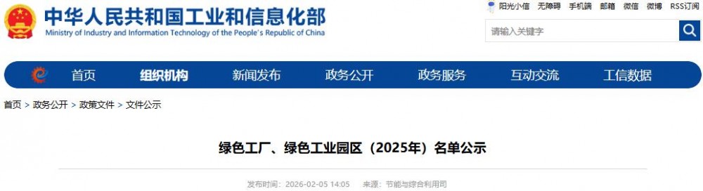 2月5日,工信部发布《绿色工厂、绿色工业园区(2025年)名单公示》。