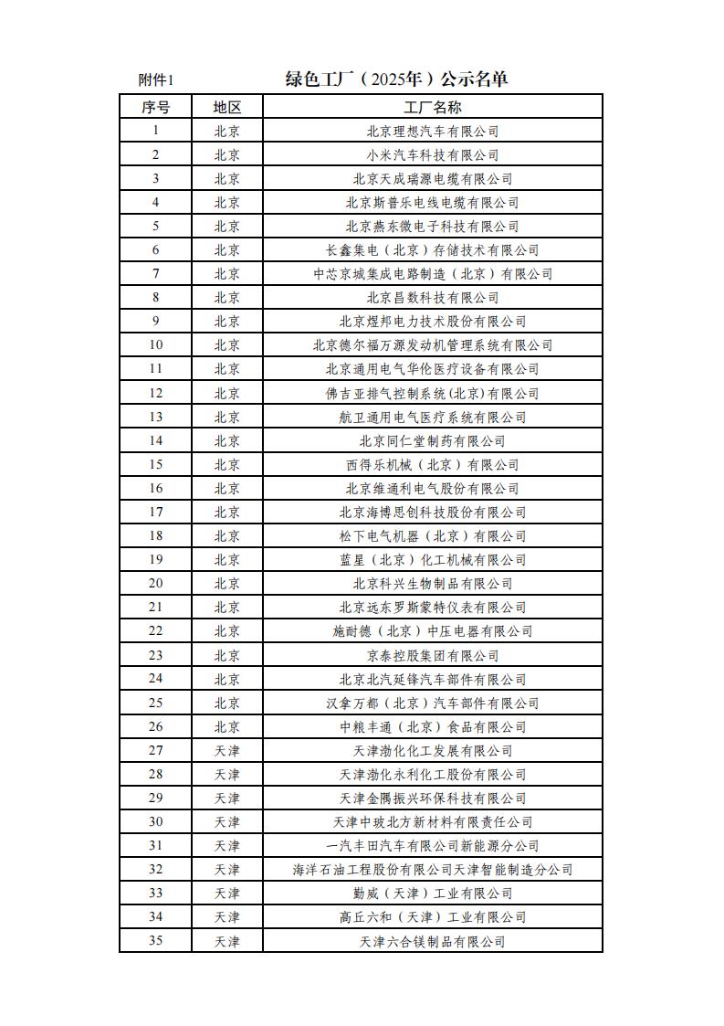 按照《绿色工厂梯度培育及管理暂行办法》《工业和信息化部办公厅关于开展2025年度绿色工厂推荐工作的通知》有关要求,经省级工业和信息化主管部门推荐及专家审核,现将2025年度新培育绿色工厂、绿色工业园区以及动态管理调整的工厂、园区予以公示。如有异议,请在公示期内与我们联系,并提交相关证明材料。